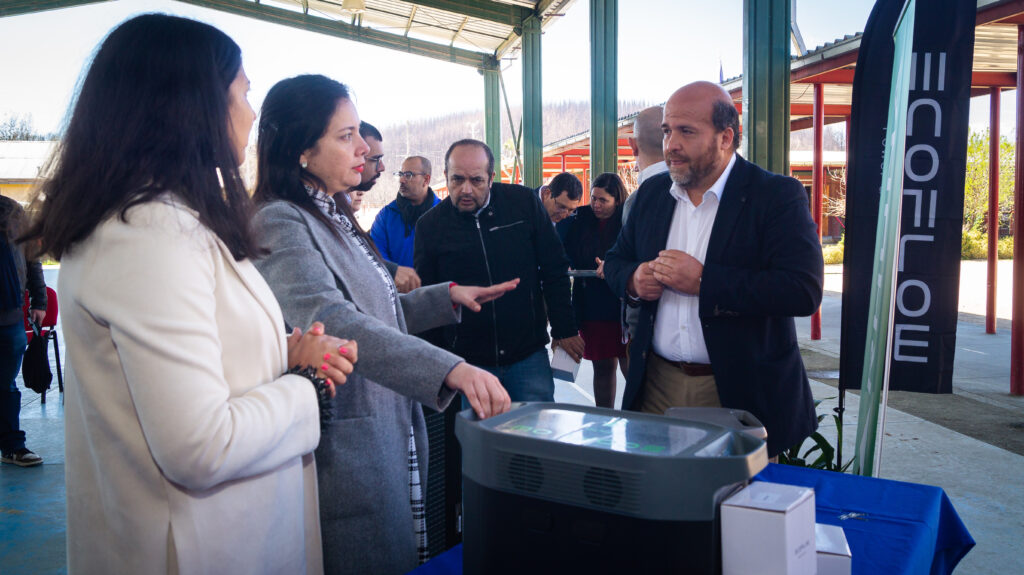 Con la participación de la alcaldesa de la I. Municipalidad de Santa Juana, Ana Albornoz, Director de la Escuela Chacayal, José Uriz, junto a la SEREMI de Energía del Biobío, Daniela Espinoza y representantes de EcoFlow y Rhona, fue entregada la donación que consistió en 6 baterías portátiles sustentables y 6 paneles solares que permiten cargar las baterías.
